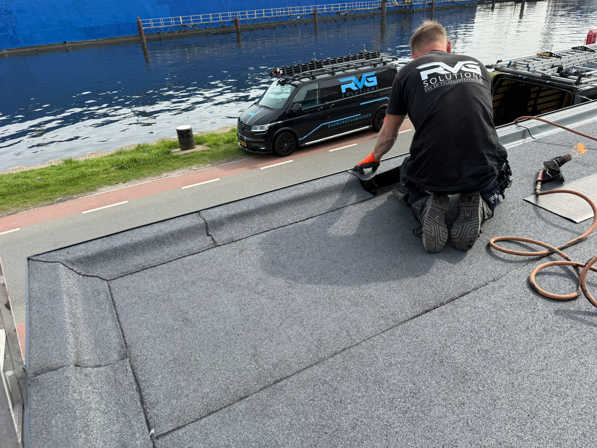 Topwerk voor een goede prijs! Na enig uitzoekwerk bij RVG-solutions uitgekomen voor de vervanging van mijn dak en dat van de buren (samen 130 m2). We wilden een 10 cm... Lees meer geïsoleerd nieuw dak met witte bitumen + 10 zonnepanelen met installatie. De randen van het dak moesten worden verhoogd met nieuw zinkwerk. Ricardo en zijn team hebben echt uitstekend werk geleverd: goede communicatie, duidelijke afspraken, complicatie rondom dakkoepel van buurman naar tevredenheid opgelost, relaxed team dat keihard werkt. In één ochtend kwam een grindzuiger al het oude grind verwijderen; na twee-en-een-halve dag was de klus geklaard! Helemaal tevreden. Absolute aanrader!